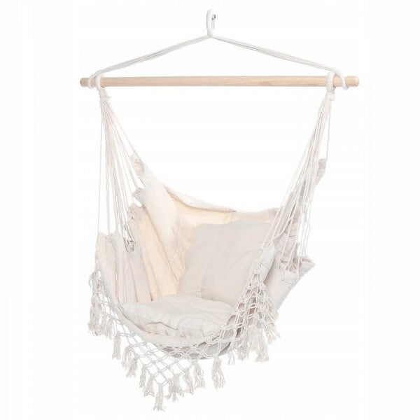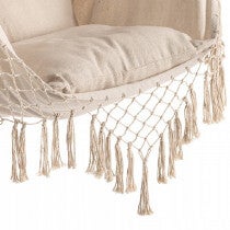 Hangfauteuil met kussens, schommel, Braziliaanse hangmat met beige hoofdband